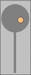 6. TARCZA OSTRZEGAWCZA KSZTAŁTOWA NIERUCHOMA składa się ze słupa, na którym jest umieszczona okrągła tarcza (dysk) pomarańczowa z czarnym pierścieniem i białą obwódką oraz latarnia z pomarańczowym szkłem. Tarcza ta wskazuje tylko jeden obraz sygnałowy, a mianowicie: